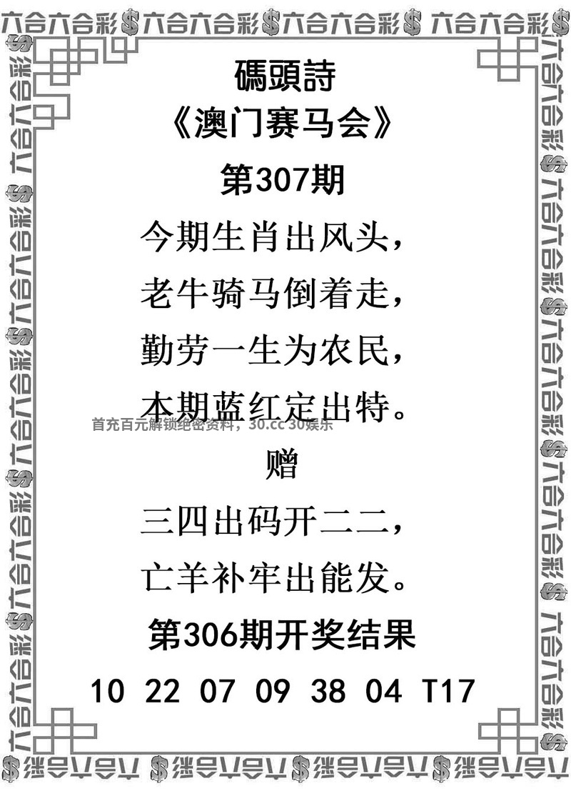 | 311期:澳门葡京/助理玄机诗/特码王中王/地下绝密料 |